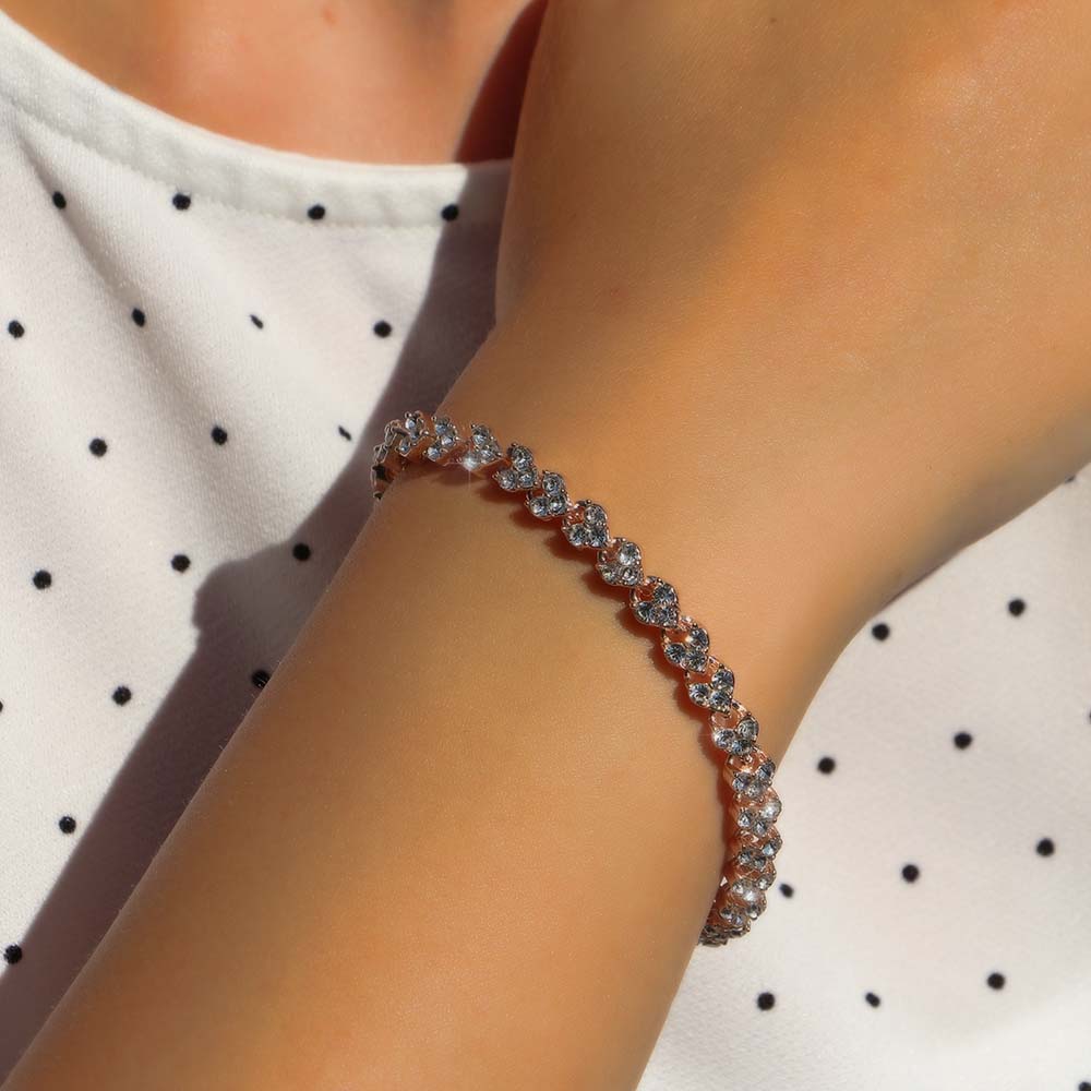 Voor alle dames die van speciale sieraden is deze armband een must have voor in de collectie. Deze Goudkleurige Hartjes Armband is voorzien van een speciaal soort ontwerp. De steentjes zijn zo gezet dat het een echte schakelarmband is geworden. Dit zorgt er onder andere voor dat je tijdens de zonnige dagen elke keer weer zal kunnen schitteren. Deze armband gaat bij goed gebruik dan ook heel je leven lang mee, zonder dat je bang hoeft te zijn dat er iets mee gebeurt. Door de kristallen is het een uitstekende toevoeging voor alle formele gelegenheden.