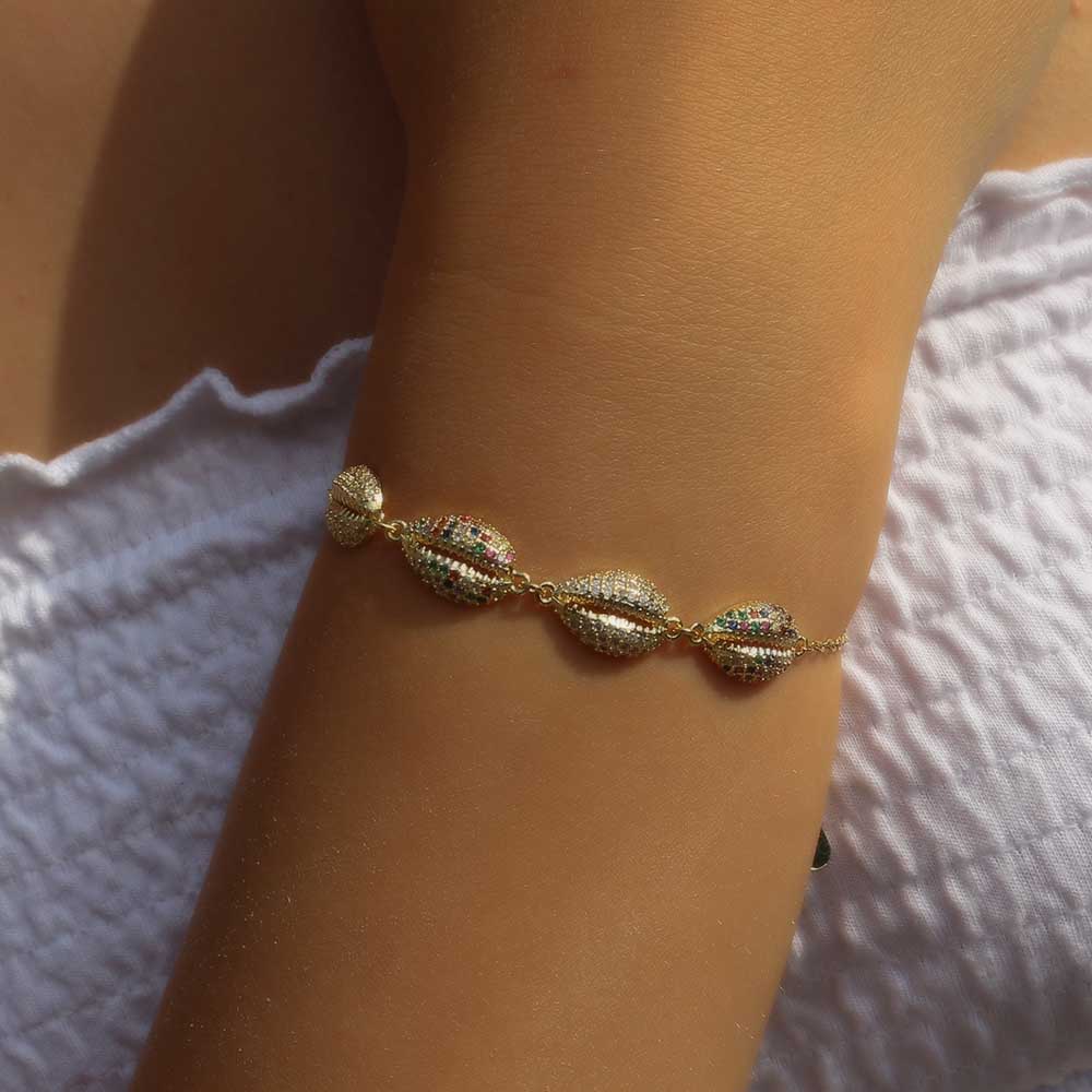 Over hot summer items gesproken: deze goudkleurige regenboog strass armband is een absolute topper uit de collectie van Juwelia. Schelpen zijn helemaal hot dit seizoen en zeker deze met strass steentjes. Een prachtig sieraad waarmee je gezien mag worden. Of je nu over de boulevard gaat slenteren of het de hele zomervakantie draagt, deze armband zorgt ervoor dat je een-en-al zomer uitstraalt. Bekijk de hele collectie met schelpen sieraden op juwelia en je hebt gegarandeerd een te gekke collectie deze zomer.