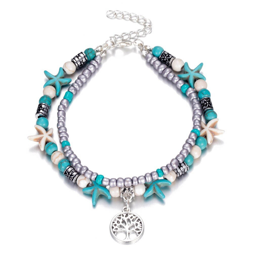 Naast dit kralen Enkelbandje met Levensboom Bedel hebben wij ook nog het Turquoise Enkelbandje met Zeester Bedel en het Enkelbandje Zeester met Schelpen bedel