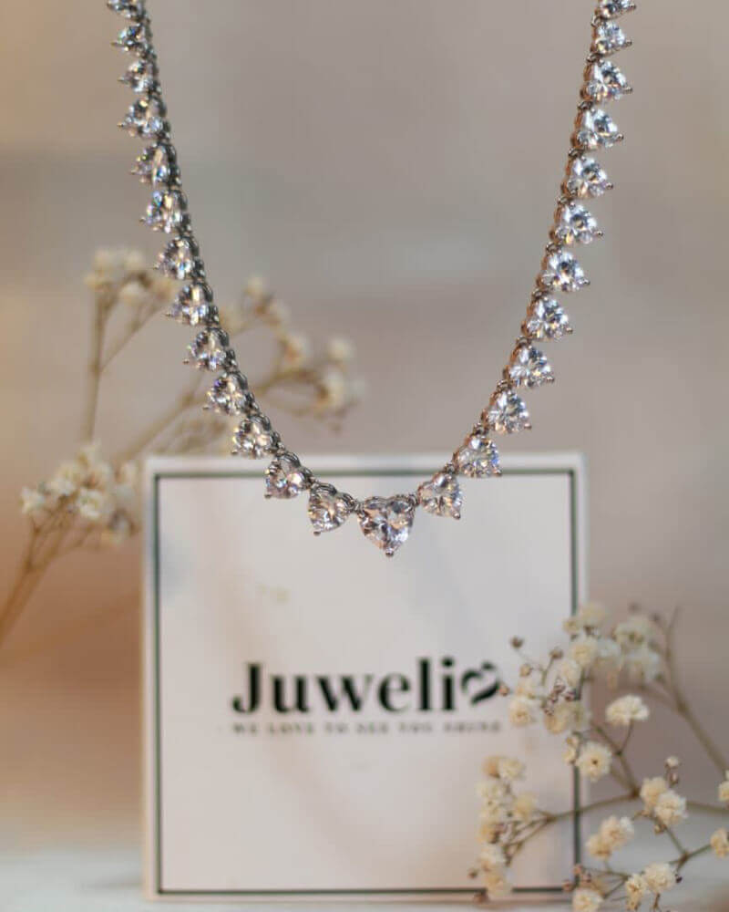 We weten natuurlijk waar hartjes symbool voor staan en om deze reden is deze witte hartjes tennis ketting dan ook het ideale geschenk om te krijgen of te geven. Je kunt er natuurlijk ook voor kiezen om deze schitterende witte hartjes tennis ketting jezelf cadeau te geven! Deze hartjes ketting is ook zeker geschikt om te combineren met andere zilverkleurige hartjes sieraden, bijvoorbeeld een hartjes armband of een van de vele hartjes oorbellen die we bij Juwelia hebben!