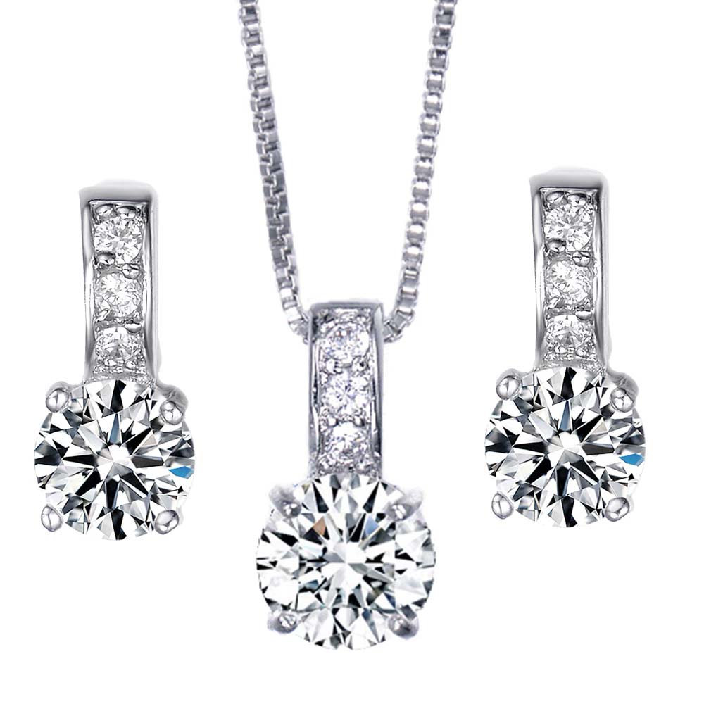 Zilverkleurige Zirkonia Ketting met Oorbellen